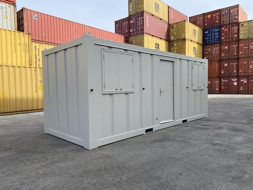 This 20ft Open Plan Office Container provides a durable and secure space for on-site management, remote workspaces, or temporary administrative needs. Constructed from high-tensile steel, this unit is designed to withstand various weather conditions and job site environments. Its design facilitates straightforward relocation, allowing it to serve as a versatile solution for projects requiring adaptable space .