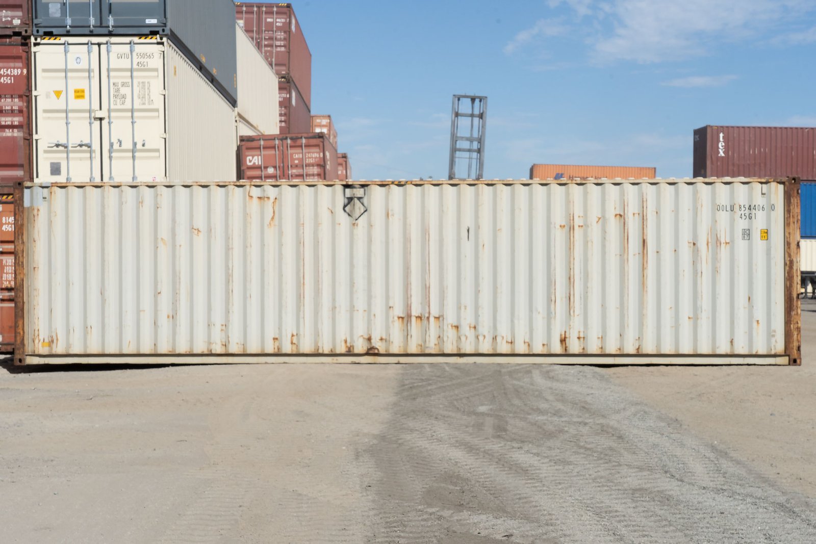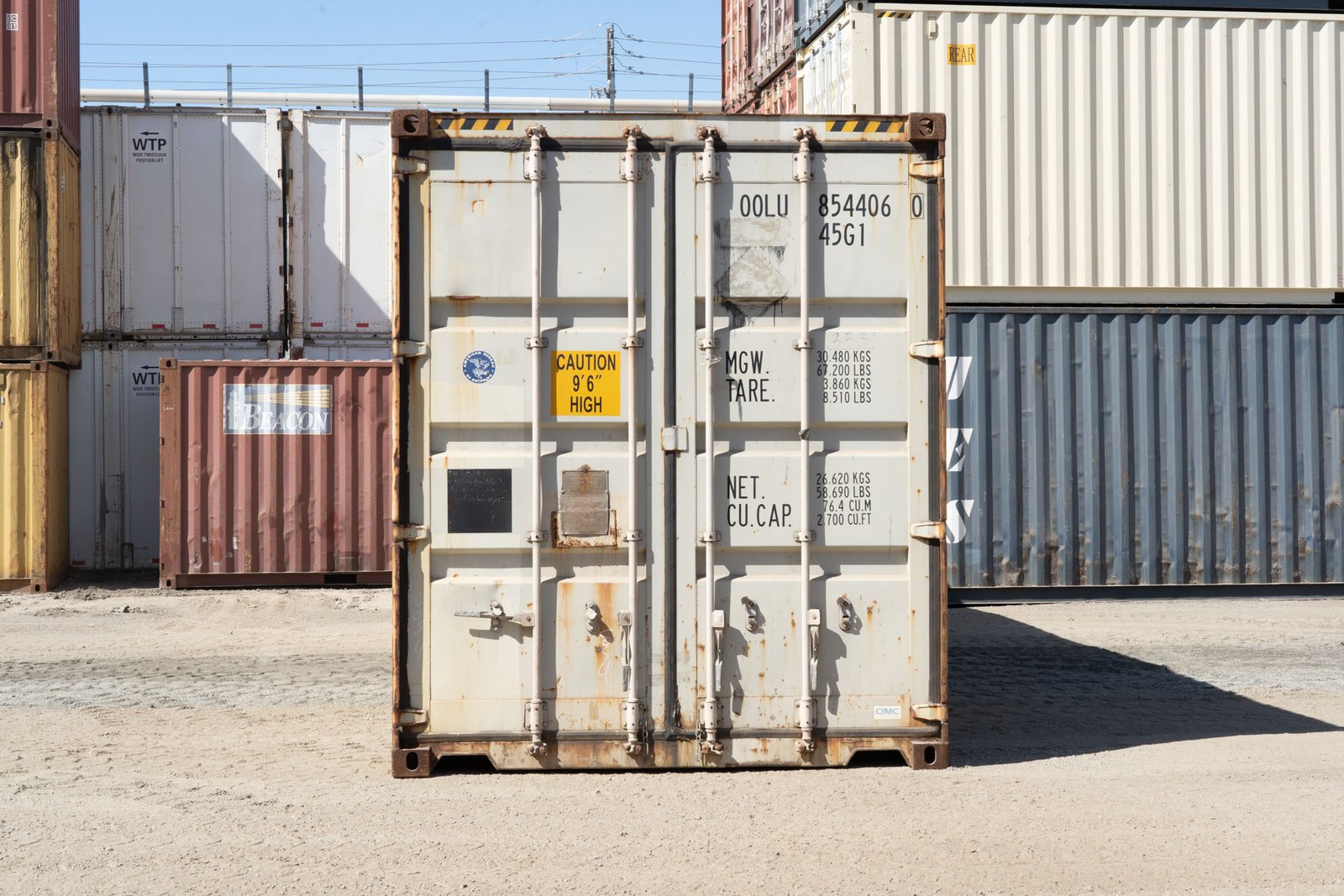 This 40-foot high cube shipping container offers approximately 320 square feet of enclosed space with an internal height of 8 feet 9 inches. The unit was previously utilized in freight transport and has been repurposed for ground-level storage applications. Construction consists of COR-TEN weathering steel.