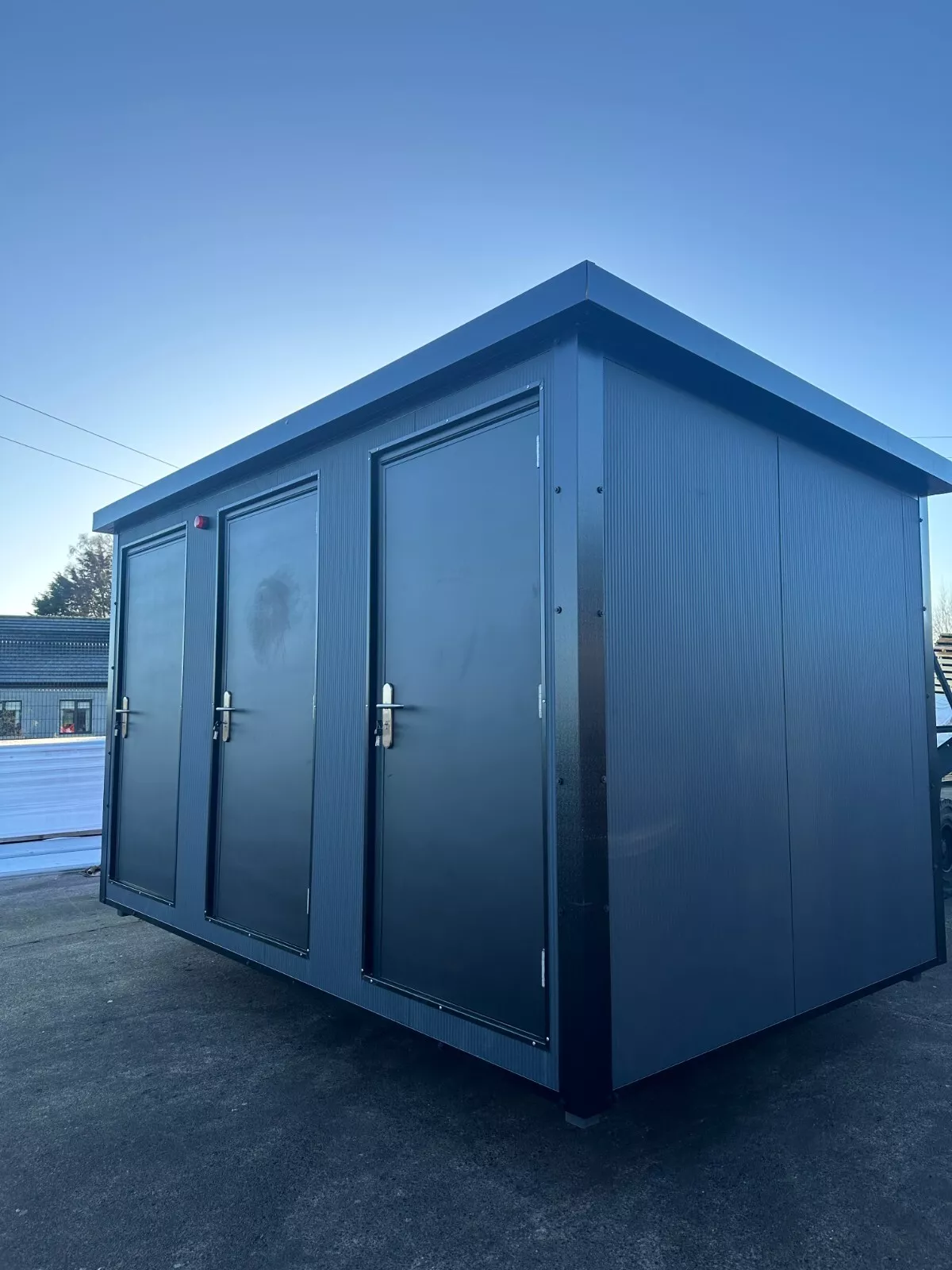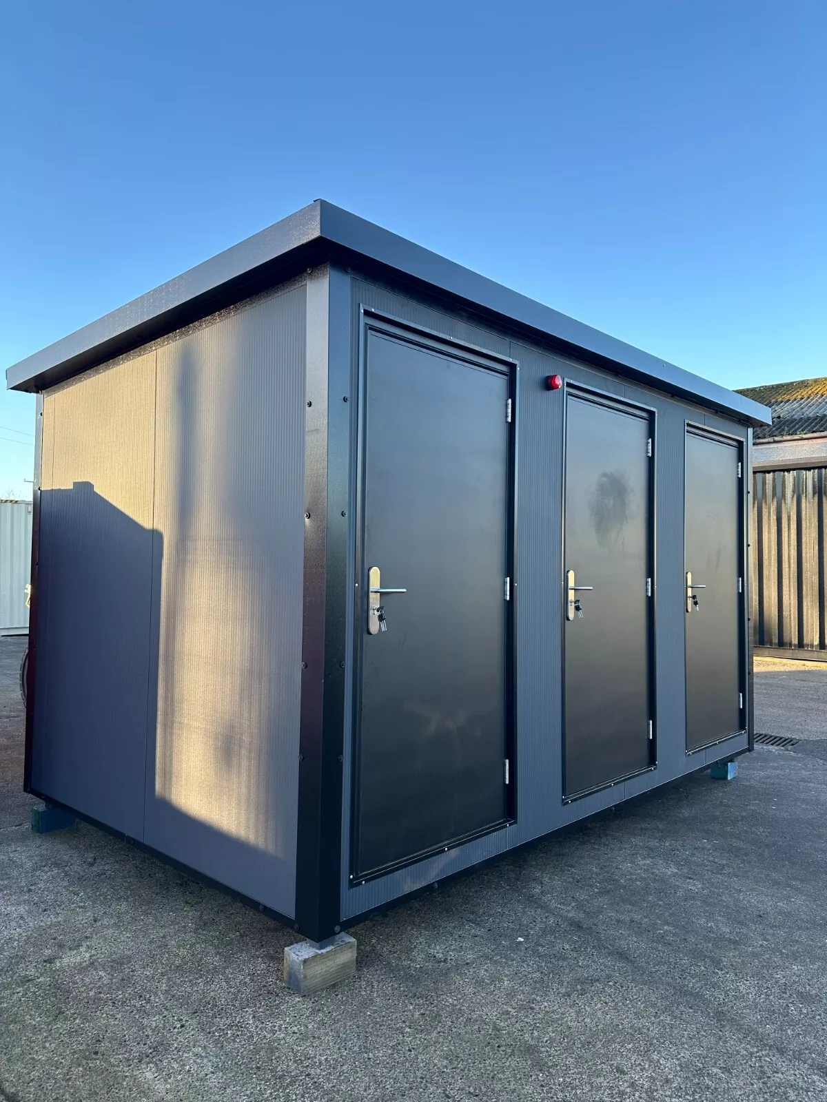 This Triple Toilet Unit is a self-contained sanitation facility constructed within a modified shipping container framework. Designed for deployment in locations requiring permanent or temporary restroom infrastructure, this unit provides three separate toilet compartments within a single, secure structure. The containerized construction facilitates straightforward transportation and installation across various site conditions .